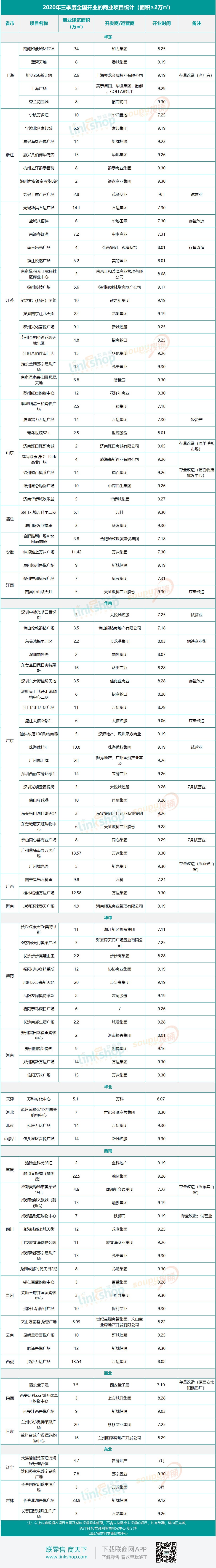 附:2020年三季度新開商業(yè)項目統(tǒng)計表