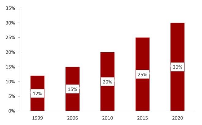倉儲會員店起源于美國,戰(zhàn)后美國城鎮(zhèn)化率提高、中產(chǎn)階 級群體擴大、城市外圍商業(yè)圈發(fā)展催生了倉儲會員店業(yè)態(tài)。