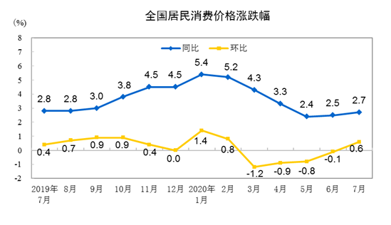 國家統(tǒng)計局:7月份居民消費價格同比上漲2.7%