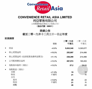 利亞零售2019年營業(yè)額增長5.9% 凈利潤增長13.3%