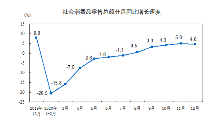 12月份,社會消費品零售總額40566億元,同比增長4.6%,增速比上月回落0.4個百分點。 ...