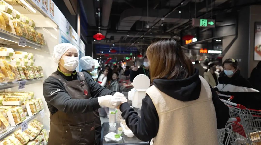 試吃員總會在顧客靠近時主動遞上試吃品,紙托里的現(xiàn)烤面包切得方正整齊,一旁的食品級小夾子輕巧地夾起一塊。顧客王女士說:“以前整盒自取總擔(dān)心衛(wèi)生問題,現(xiàn)在像在朋友家做客一樣安心。”這樣的場景,正是永輝試吃體驗(yàn)的縮影。試吃員上崗前必須通過商品知識考核,從一塊試吃品的尺寸、夾取工具的設(shè)計,到員工遞出時的微笑弧度,每一個細(xì)節(jié)都在無聲地傳遞著“被尊重”的儀式感。