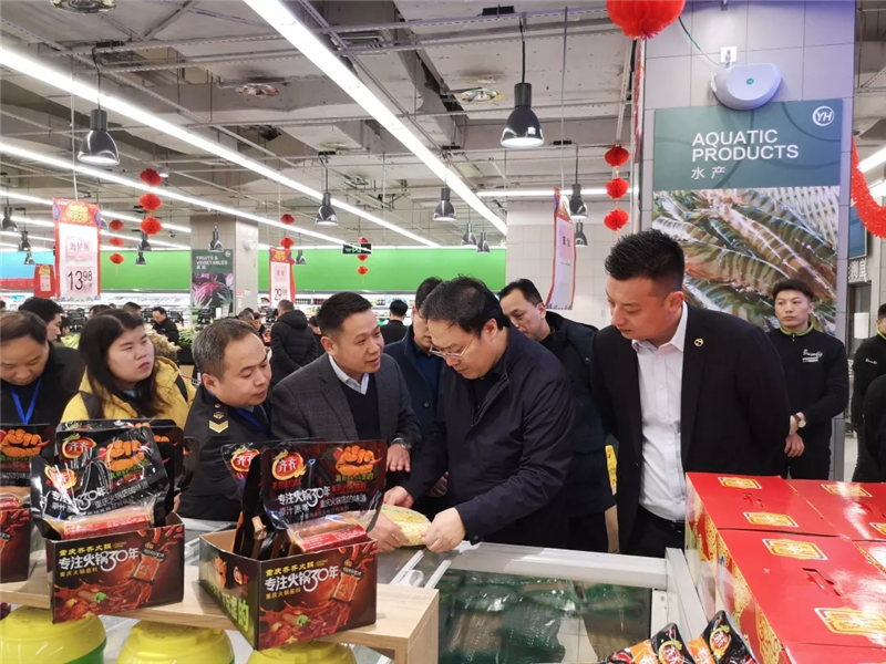 1月29日,三門峽市市長(zhǎng)孫繼偉與工商、食藥等部門負(fù)責(zé)人蒞臨永輝超市三門峽萬(wàn)達(dá)廣場(chǎng)店檢查全市春節(jié)保障情況。