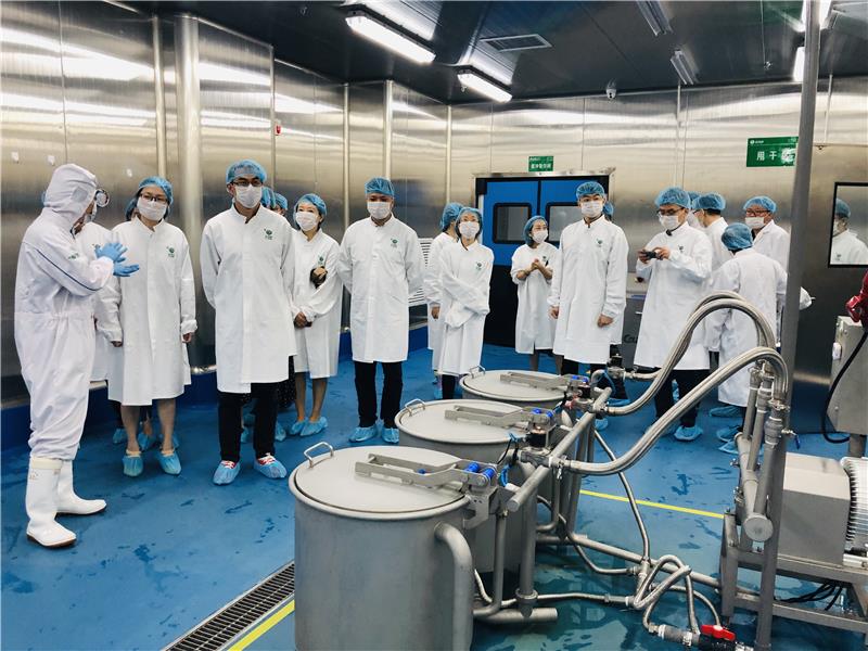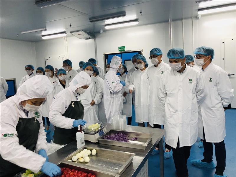 座談期間,機(jī)構(gòu)代表團(tuán)聆聽(tīng)了關(guān)于彩食鮮的介紹,了解了彩食鮮的生意模式、服務(wù)對(duì)象和工廠概況,并當(dāng)場(chǎng)品嘗了江蘇彩食鮮工廠的爆款產(chǎn)品---Bon沙拉和智利原產(chǎn)三文魚(yú),對(duì)產(chǎn)品的新鮮度和口感給予了高度的評(píng)價(jià)。為進(jìn)一步探究這些美味食材的來(lái)源,機(jī)構(gòu)代表團(tuán)在彩食鮮員工的帶領(lǐng)下,移步實(shí)驗(yàn)室和車(chē)間區(qū)域,進(jìn)行實(shí)地參觀。