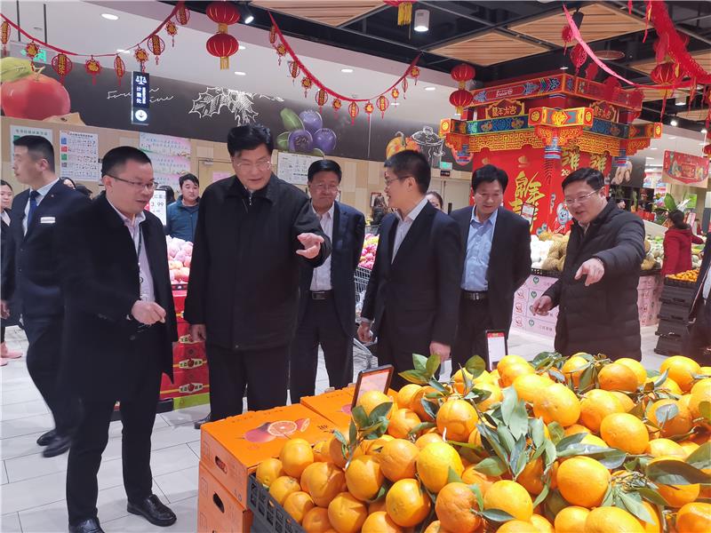 隨著春節(jié)長假臨近,為做好重慶市場保供穩(wěn)價,滿足人民美好生活需要,1月16日下午,重慶市政協(xié)主席王炯、沙坪壩區(qū)區(qū)委書記江濤、沙坪壩區(qū)商務(wù)委員會主任何懷東等領(lǐng)導(dǎo)在重慶永輝超市有限公司副總經(jīng)理夏治寬的陪同下,蒞臨永輝超市龍湖大學(xué)城店視察節(jié)日市場保供和安全工作。
