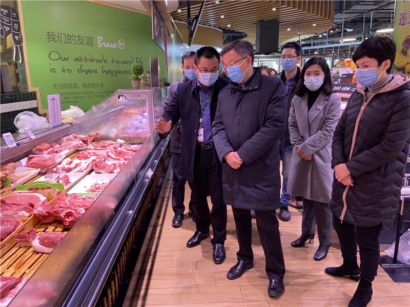 超市作為疫情期間主要營業(yè)的場所,是保障市民“菜籃子”、“米袋子”的關鍵。李副市長首先來到賣場生鮮區(qū)域,詳細詢問了近期蔬菜、肉類的供應情況,對貨架上品種豐富、數(shù)量充足的蔬菜表示滿意,同時指出超市要確保供貨渠道穩(wěn)定暢通,滿足市場供應,確保市場價格穩(wěn)定、秩序良好,為居民生活提供有力保障。