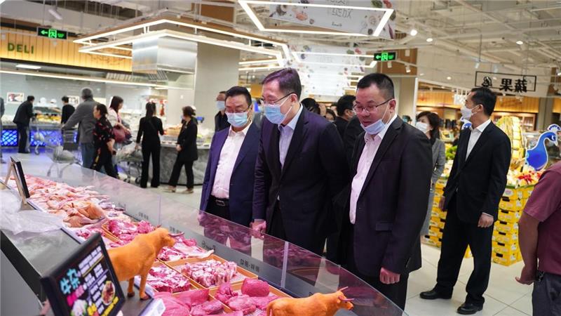 “五一”假期將至,為保障節(jié)日期間消費市場穩(wěn)定有序,確保全市人民過上一個歡樂祥和的節(jié)日,近日,重慶市副市長蔡允革、重慶市商務委員會副主任王玨等領導蒞臨永輝超市湖彩路店督導檢查節(jié)日市場保供、消防安全等工作,重慶永輝超市有限公司副總經(jīng)理夏治寬陪同檢查。