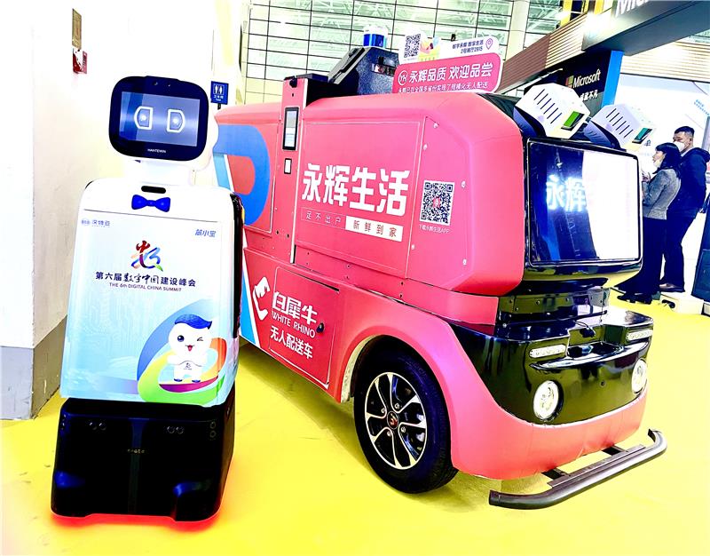除此之外,在整個(gè)展區(qū)內(nèi),觀眾還可以看到一輛標(biāo)著永輝生活logo的紅色袖珍小汽車,車上沒有駕駛員,但遇見行人會(huì)自動(dòng)避讓或剎車。這也是此次永輝的另一個(gè)“移動(dòng)展臺(tái)”——“永輝×白犀?!睙o人配送車。