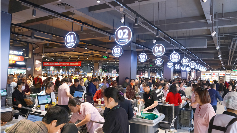 作為“新手上路”,深圳卓悅匯店在營業(yè)過程中主打“聽勸”,針對員工和顧客反饋的問題,第一時間進行優(yōu)化?!笆兹湛土鞅瑵M,我們第二天就增調(diào)了100部購物車、100個購物籃;顧客反饋入口有異味的問題,門店當晚對地面和設備進行深度清洗,管道緊急疏通,味道已經(jīng)徹底消除?!遍T店負責人介紹。