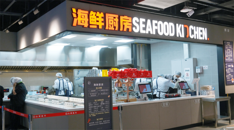 在調(diào)改過程中,門店整體破拆率接近90%,一層規(guī)劃全鮮食品類,烘焙、加工堂食、海鮮廚房、活鮮、肉禽等品類,方便顧客購物就餐需求;二層中庭不堆砌商品,取而代之的是寬敞的休息區(qū),將寶貴的空間歸還給顧客。同時,整體開放式動線的調(diào)整也讓購物變得更加愉快。門店的設備業(yè)進行了升級,從冷鏈設備到加工餐廚設備,整體硬件設施更新占比達到100%,設備品牌也與胖東來時代廣場店高度一致。