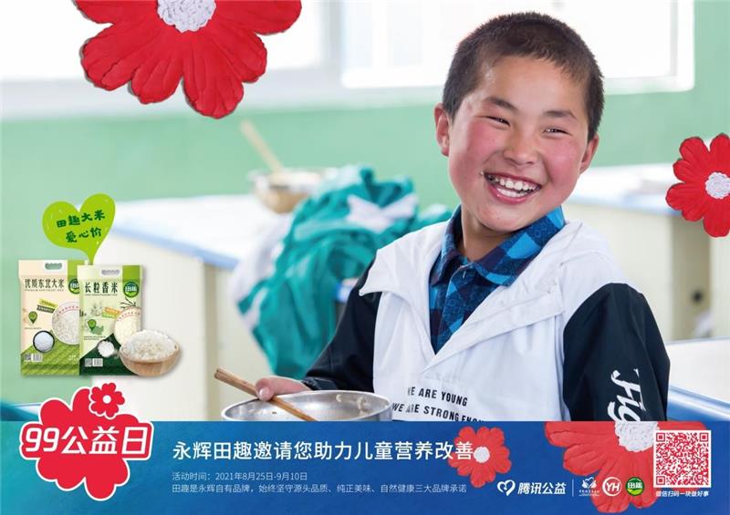 8月25日至9月10日,在騰訊99公益日來臨之際,永輝自有品牌——田趣三度相約,再次參與騰訊公益平臺“愛加餐”項(xiàng)目,發(fā)起“永輝田趣 為愛加餐”計(jì)劃,旨在通過營養(yǎng)加餐,有效改善欠發(fā)達(dá)地區(qū)兒童的營養(yǎng)狀況。 ...